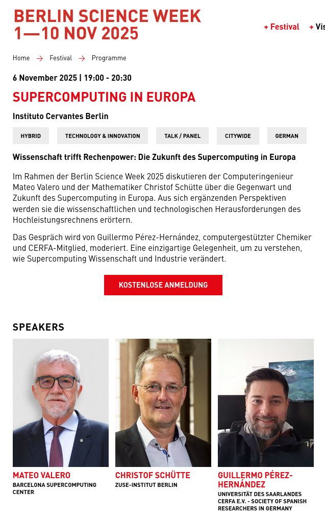 The event, titled Supercomputing in Europe, was part of the 2025 Berlin Science Week (my second participation!) and focused on the present and future of Supercomputing in Europe, offering complementary scientific and technological perspectives on the challenges of high-performance-computing.